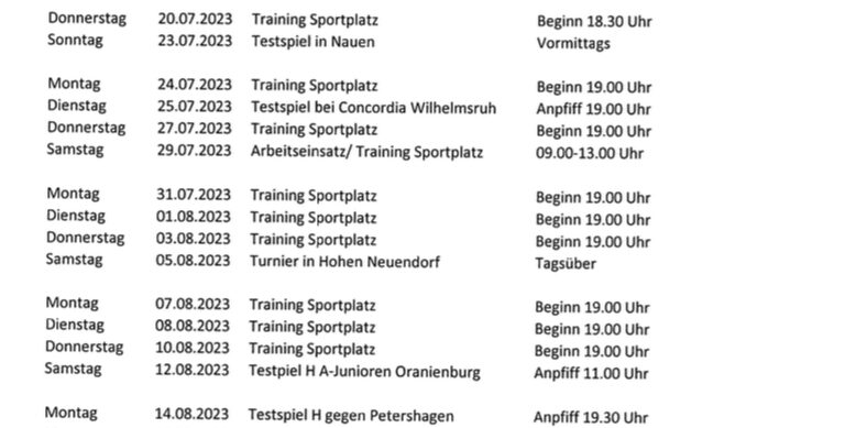 Juli52023Allgemein Kaum ist die alte Saison beendet, steht die neue Saison schon in den Startlöchern. Anbei für alle Interessierten der aktuelle Vorbereitungsplan für die 1. Männermannschaft.
